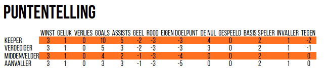 Wy meitsje de list mei help fan gratisvoetbalmanager.com en de puntentelling is sa: