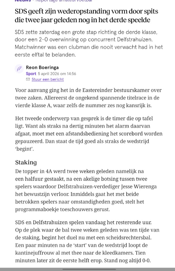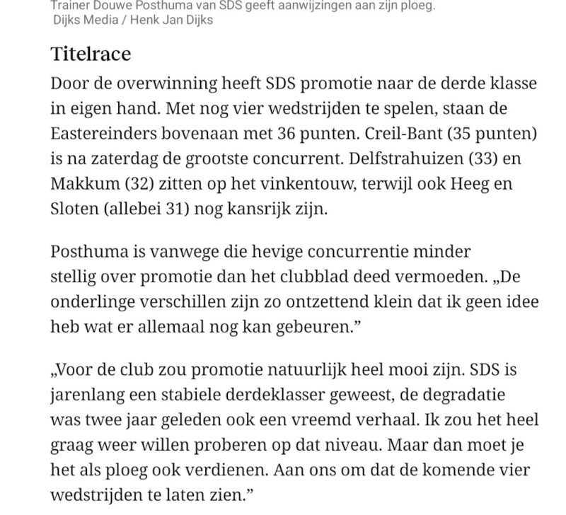 Sneon 4-4-20263 april 2026 Yn de LC fan moandei 5-4 stiet in prachtich wiidwqeidich ferhaal oer SDS 1 – Delfstrahuizen 1