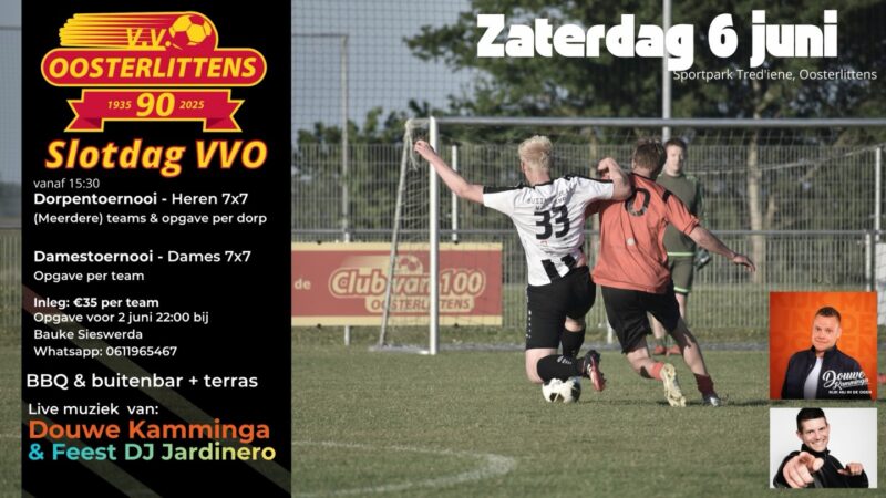 VV Oosterlittens slút tradisjoniel it seizoen ôf mei in doarpentoernoai en in noflike jûn mei muzyk. Hjir mei elkenien oan meidwaan mei in teamke. It is foar 7-tallen.