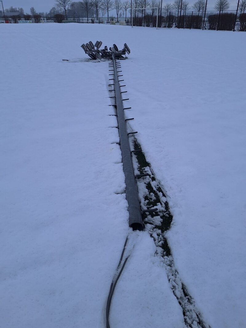 Omdat onduidelijk is hoe dit kon gebeuren, en wellicht ook andere masten niet safe zijn, mag niemand het kunstveld op.