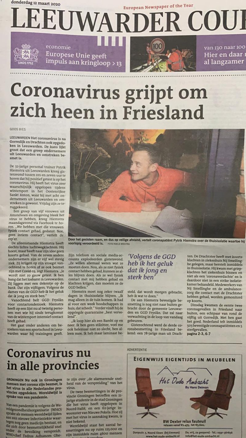 Yn de Ljouwerter Krantre fan fannemoarn koenen wy lêze dat âld-SDS’er Pytrik Hiemstra al thús siet yn quarantaine y.f.m. it Corona-firus.