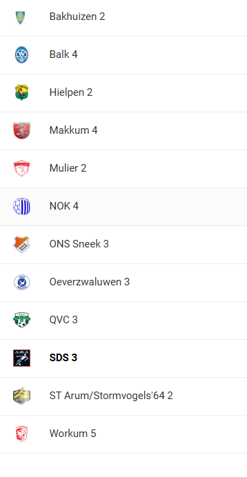 SDS 4 hat de lêste jierren hast deselde kompetysje-yndieling. Dit kear dus gjin Arum 2 en Mulier 2, mar dochs wer TOP 2.