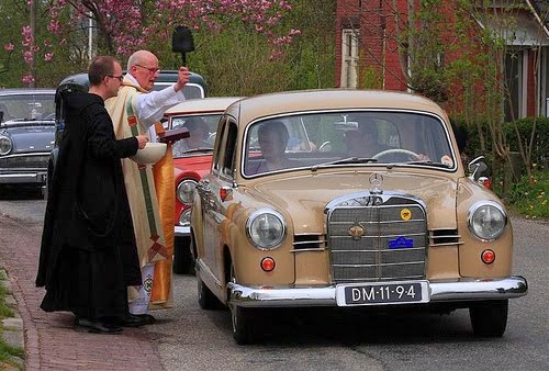 By in ald mantsje yn in krap autootsje mei klassieke musiek. Sa op’e koffie by von gaal!