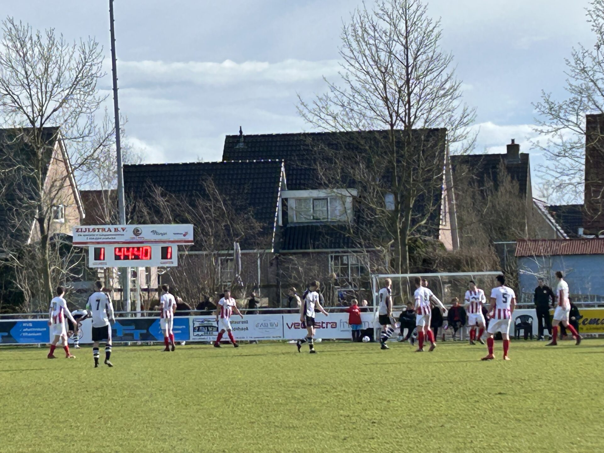 Wolvega begon heel erg fanatiek en hier hadden wij het heel lastig mee. We kwamen niet in ons spelletje. Voor rust had Wolvega enkele grote kansen, maar gelukkig ging er niet 1 in. Net voor rust scoorde Redmer nog wel voor ons. Een prachtig afstandschot ging zo over de keeper een.