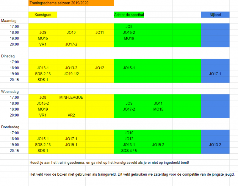 23 augustus 2019Hjir de yndielingen fan de trainingen foar kommend seizoen. Om der foar te soargjen dat it keunstgers net hurder slyt dan it no al docht graach traine neffens ûndersteand skema. Dus graach efter de sporthal traine as dit sa yndield stiet.