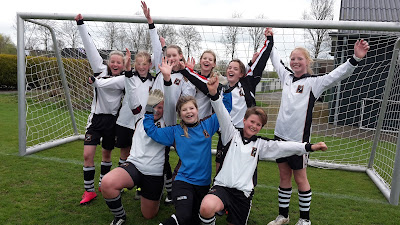 De meiden hebben een prima wedstrijd gespeeld en je ziet dat het team aan het groeien is dit seizoen. Ze staan op dit moment op een welverdiende tweede plek op de ranglijst. En dat ze daar blij mee zijn is te zien op de foto!