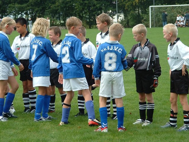 De jeugd jout it goeie foarbyld at it om winnen of ferliezen giet. Nei ôfrin jouwe de spilers elkoar freonskiplik in hân. Hjir lokwinskje de jonges en famkes fan YVC de winners fan SDS E4.
