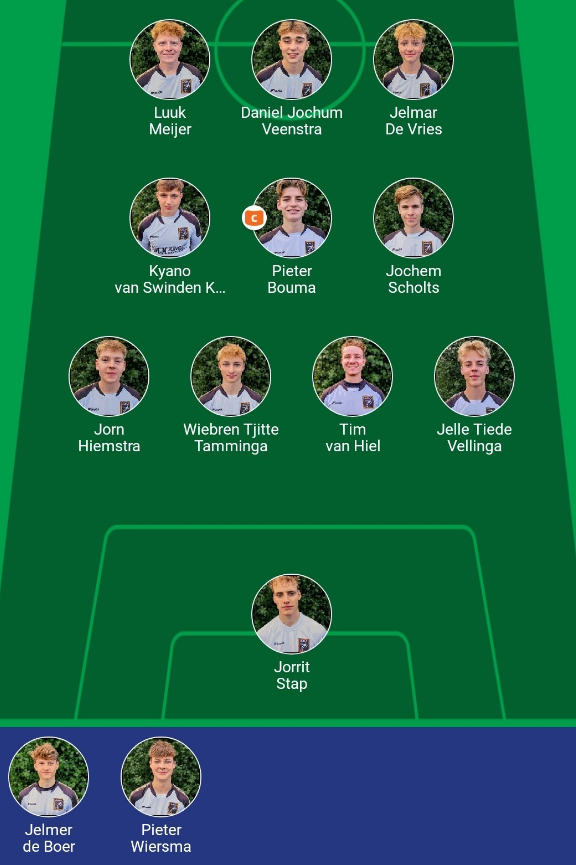 De JO19-1 wûn sneon mei 2-0 by LSC JO19-2 en slúte de earste fase sa kreas ôf. Sy dienen dat yn de folgende opstelling: