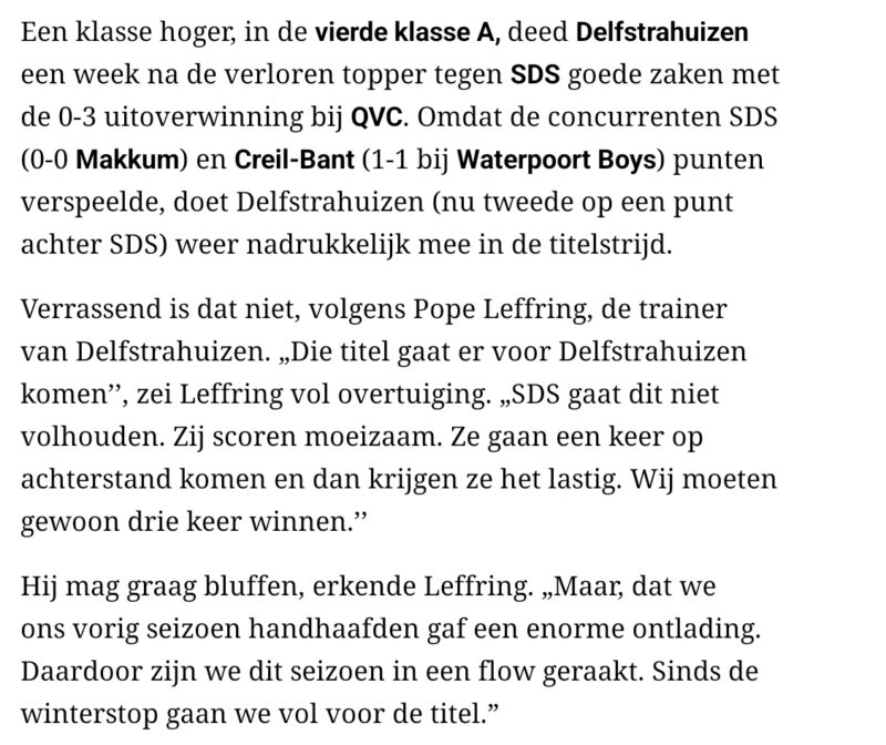 Tsja, net in bytsje fan him sels oertsjûge, dy trainer fan Delfstrahuizen. Sikje út de LC.