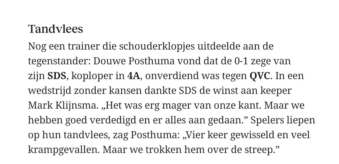 De oerwinning fan SDS 1 op QVC 1 wie moai. De útslaggen op oare fjilden prima.
