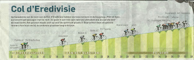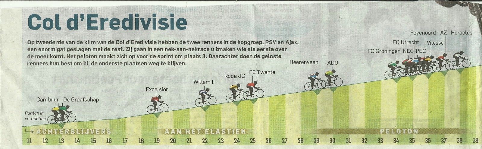 Juster in hiele moaie yllustraasje fan de stân yn de earedevysje. Twa koprinners (net yn byld) en de efterfolgers. Klik op it plaatsje foar in fergrutting.