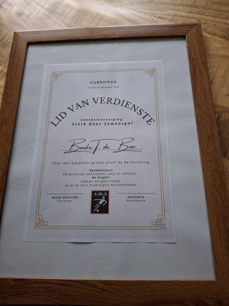 Bauke de Boer is sneon útroppen tot Lid fan fertsjinste fan SDS foar alles wat hy al dy jierren dien hat foar SDS.