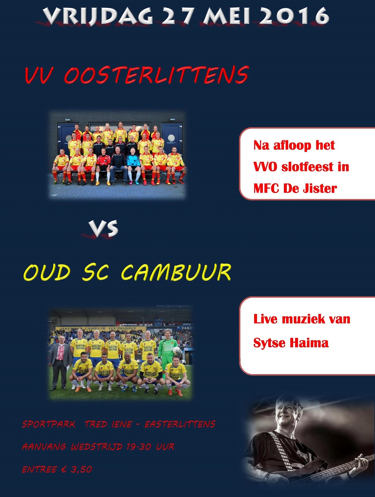 27 mei 2016Slotjûn SDS-pupillen Morgen is de jaarlijkse slotjûn van SDS. De weersvooruitzichten zijn goed! We hebben slechts een één veld tot onze beschikking. We maken echter ook gebruik van het MFT voor de partijtjes. Het is daarom verstandig dat je geen schoenen met noppen aandoet, maar gewone gymschoenen of zaalvoetbalschoenen. Om 17:00 uur gaan we los. Kom op tijd zodat we ook meteen kunnen beginnen. Het programma duurt tot ongeveer 19:30. Gedurende de avond krijg je patat met limonade. Je hoeft je niet op te geven, gewoon komen in je voetbalkleren! We willen op tijd beginnen dus een half uur voor aanvang aanwezig zijn (16:30 uur). Als je op de Skoalleseize komt, dan even melden in de kantine. Je hoort dan in welk groepje je zit. Onder alle aanwezige pupillen verloten we ook dit jaar weer mooie prijzen! Tot morgen (vrijdag 27 mei). De jeugdcommissie van SDS Op 1 juni hebben we de laatste leiders/trainersvergadering. Jullie kunnen dan ook alle materialen en passen inleveren. Plaats: De Skoalleseize Tijd: 19:30 Pastoar ten Bokumstr. 15 8736 JG REAHUS